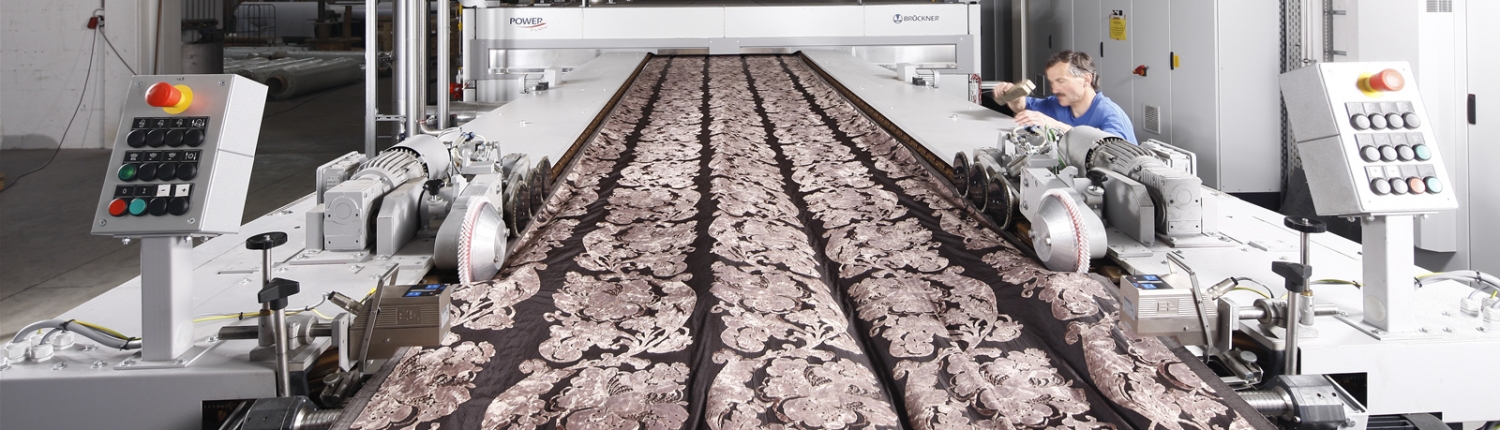 Trocknen, Thermofixieren, Appretieren auf Hochleistungspannrahmen (bis 12 Felder) und einer Breite bis zu 360 cm